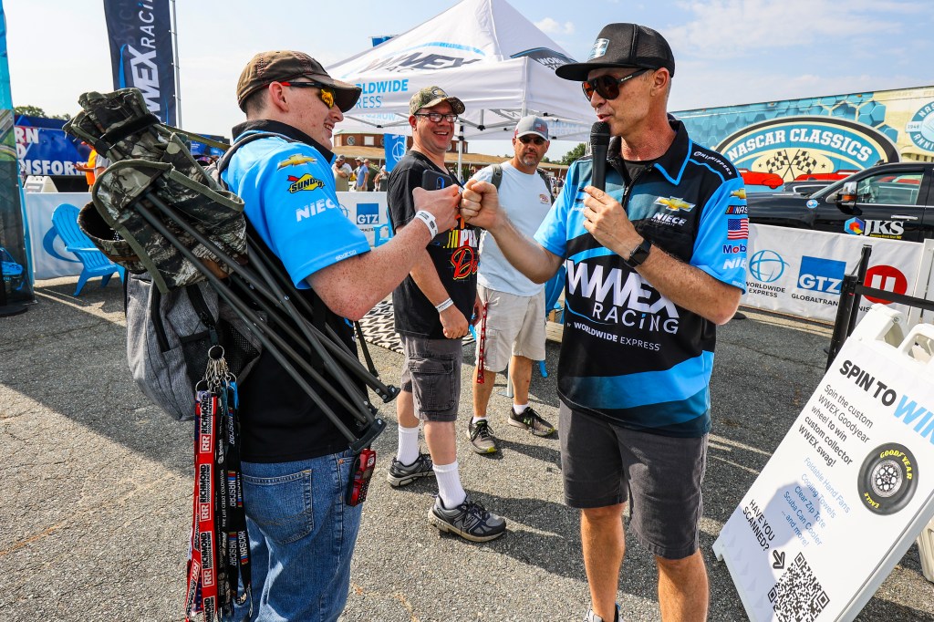 Having never participated in display opportunities (tradeshows, etc.), WWEX did not have an inventory of available signage, giveaways or other assets necessary for a fan engagement area. With the help of an agency partner in year one, we created a 20×20’ midway display featuring an interactive tire change, driver and crew appearances, display vehicles and a custom prize wheel.